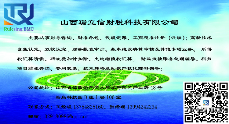 山西瑞立信財稅科技有限公司是以會(huì )計師事務(wù)所、稅務(wù)師事務(wù)所及知識產(chǎn)權代理公司等專(zhuān)業(yè)服務(wù)機構作為依托背景,擁有多名注冊會(huì )計師、注冊稅務(wù)師、會(huì )計師、助理會(huì )計師等專(zhuān)業(yè)的財稅人員,擁有可靠而廣泛的社會(huì )資源,能保證客戶(hù)享受到安全、放心、可靠、完善的財稅服務(wù)。