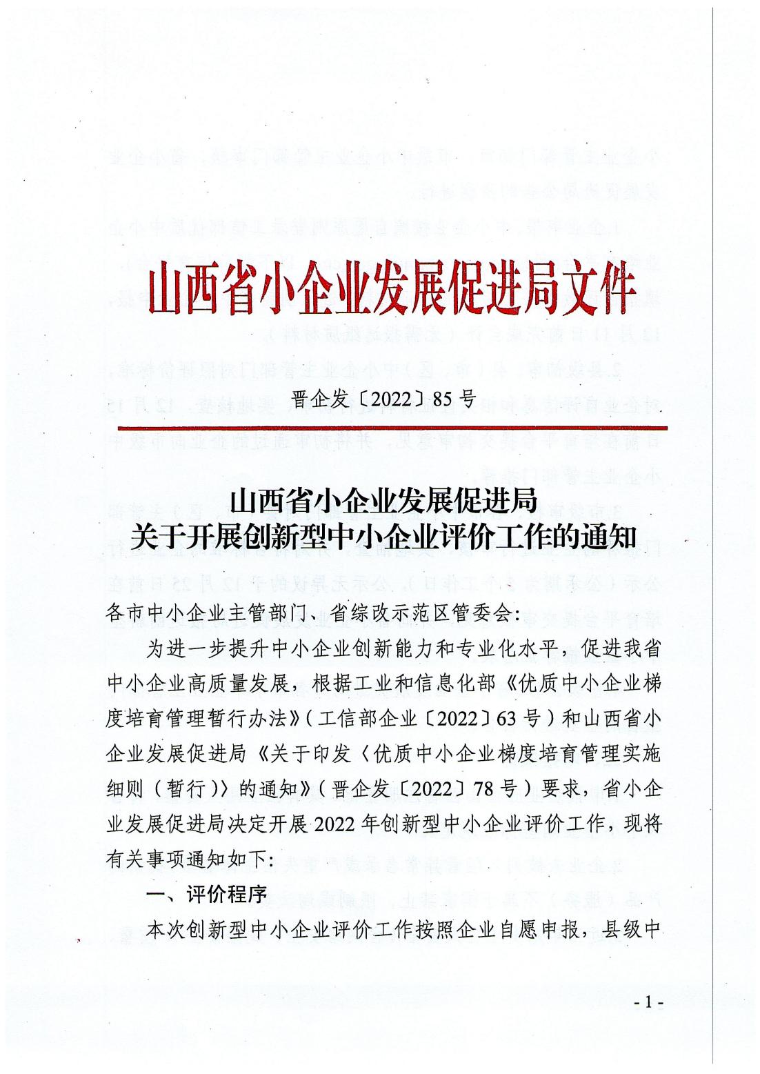晉企發(fā)【2022】85號