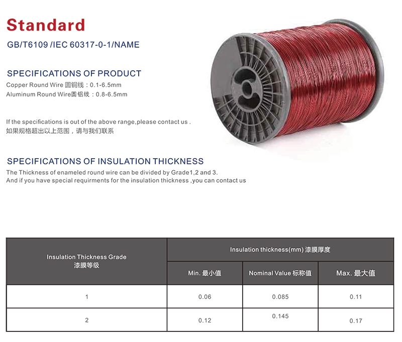 漆包圓線(xiàn)是指在電工圓銅桿或電工圓鋁桿經(jīng)圓形模具擠壓或拉拔后退火處理的導體上,根據客戶(hù)要求,涂覆所需的溫度指數及相容性的絕緣漆,經(jīng)烘焙處理后,使絕緣漆和導體形成一整體的繞組線(xiàn)。該產(chǎn)品應用于變壓器、發(fā)電機、電機、電抗器及多種電氣設備線(xiàn)圈的繞組。